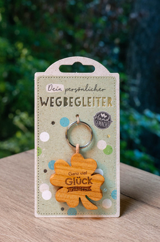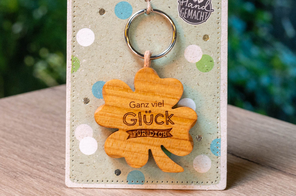 Dieses liebevoll handgefertigte Kleeblatt aus heimischen Kirschholz mit Schlüsselring aus Metall wird Dir oder Deiner Beschenkten oder Deinem Beschenkten allzeit Glück bringen auf allen Wegen!